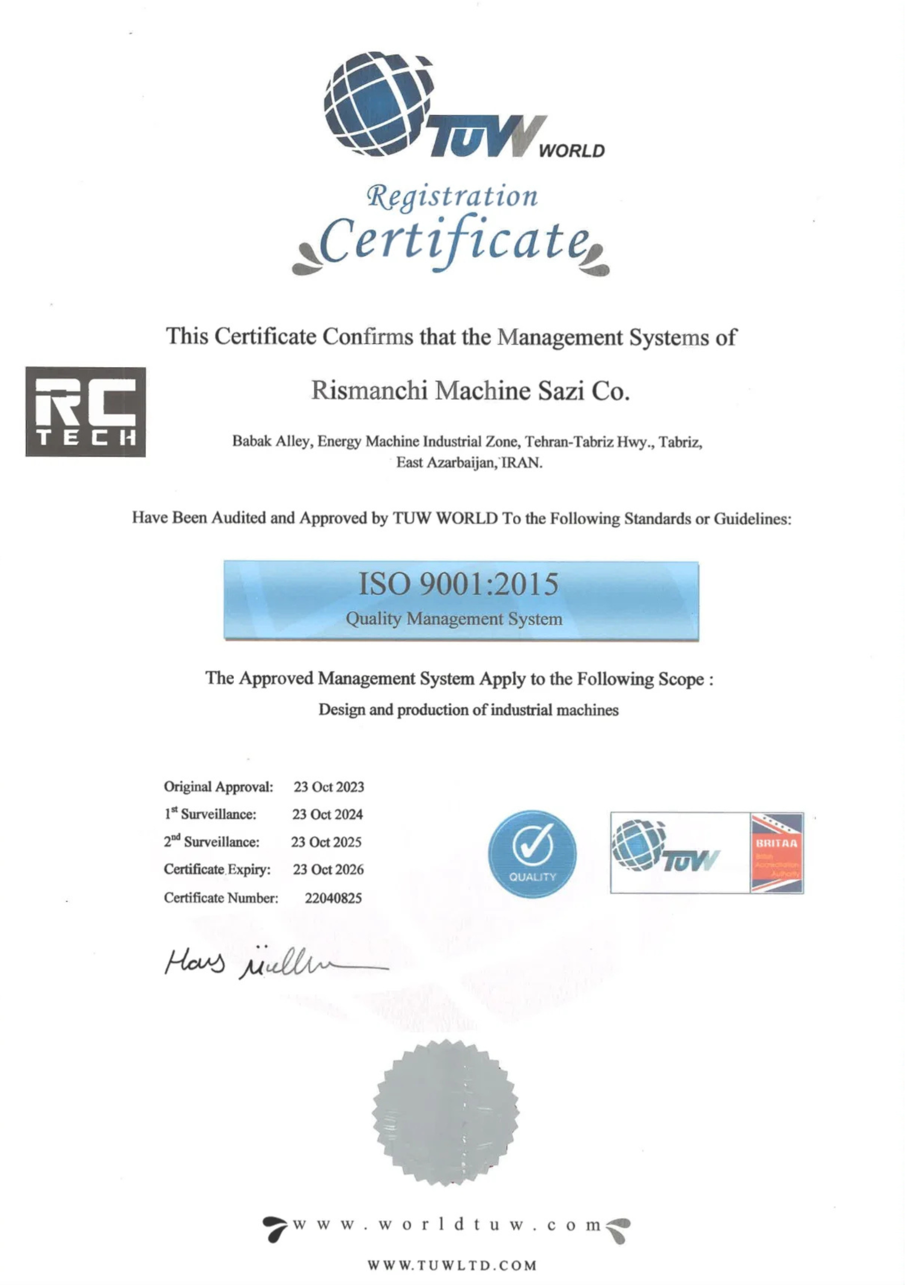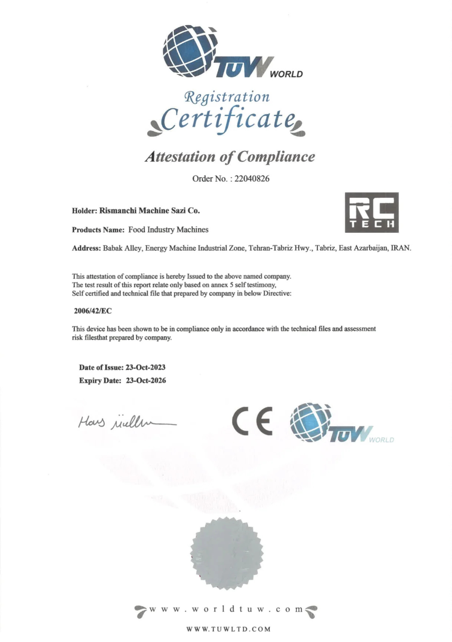 گواهینامه ها - آرسی تک | خرید دستگاه رست قهوه